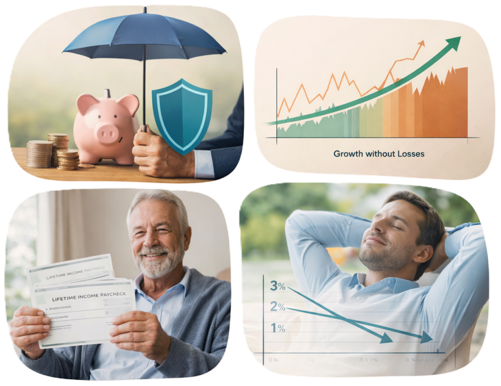 Your money doesn’t go backward due to market losses. For many retirees, avoiding sequence of returns risk is a huge deal.